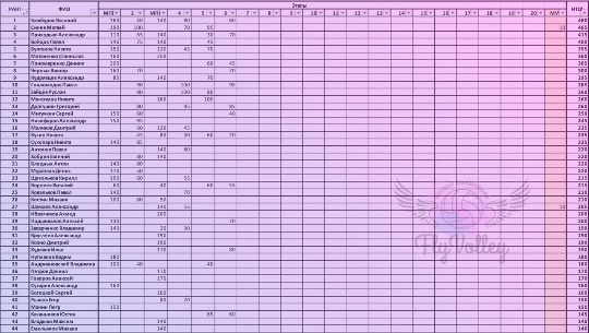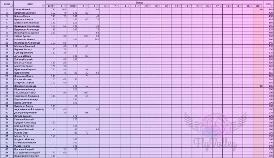 Рейтинг начисляется после каждого этапа FlyVolley. Правила начисления рейтинга Микст турниров и М/Ж турниров отличаются. Лучшие игроки каждого этапа получают дополнительный рейтинг - 10 очков. Рейтинг влияет на посев команд в группах.